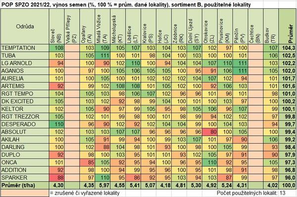 V pokusech POP SPZO 2021/22 se TEMPTATIONU podařilo dosáhnout skvělého průměrného výnosu ze všech pokusných míst 5,01 tun z hektaru, čímž získal finální první místo v sortimentu B.