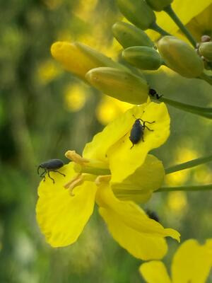 Die Larven des Kohlschotenrüsslers verursachen nur geringen Schaden. Durch seine Bohrlöcher an den Schoten ist er aber ein Wegbereiter für die Kohlschotenmücke. Die Schotenschädlinge werden bei der Behandlungsentscheidung gemeinsam betrachtet.