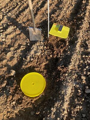 Gelbschalen rechtzeitig aufstellen (Wasser, etwas Spüli, Gitter): Die Schalen fangen besser, wenn sie etwas eingegraben werden. Der Rapserdfloh springt eher zufällig hinein. Die gelbe Farbe zieht diesen Käfer nicht an. Steht Altraps benachbart, eine Gelbschale an dieser Schlagseite aufstellen – auch dort, wo Hecken oder Gehölze/Wald angrenzen (Sommerlager der Käfer). Bei größeren Schlägen mehrere Gelbschalen aufstellen (mindestens 20 m vom Feldrand entfernt). Innerhalb eines Schlages fangen die Schalen oft sehr unterschiedlich.