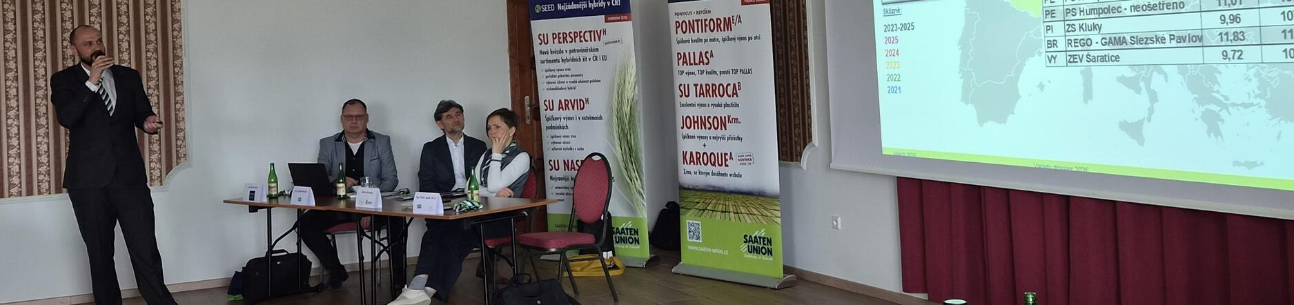 Produktový manažer HySEED Ing. Pavel Ježek, Ph.D. se zaměřil na výhody hybridních pšenic. Ty díky heteróznímu efektu dokážou dosahovat stabilních výnosů i v náročnějších půdně-klimatických podmínkách.